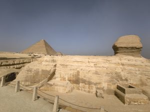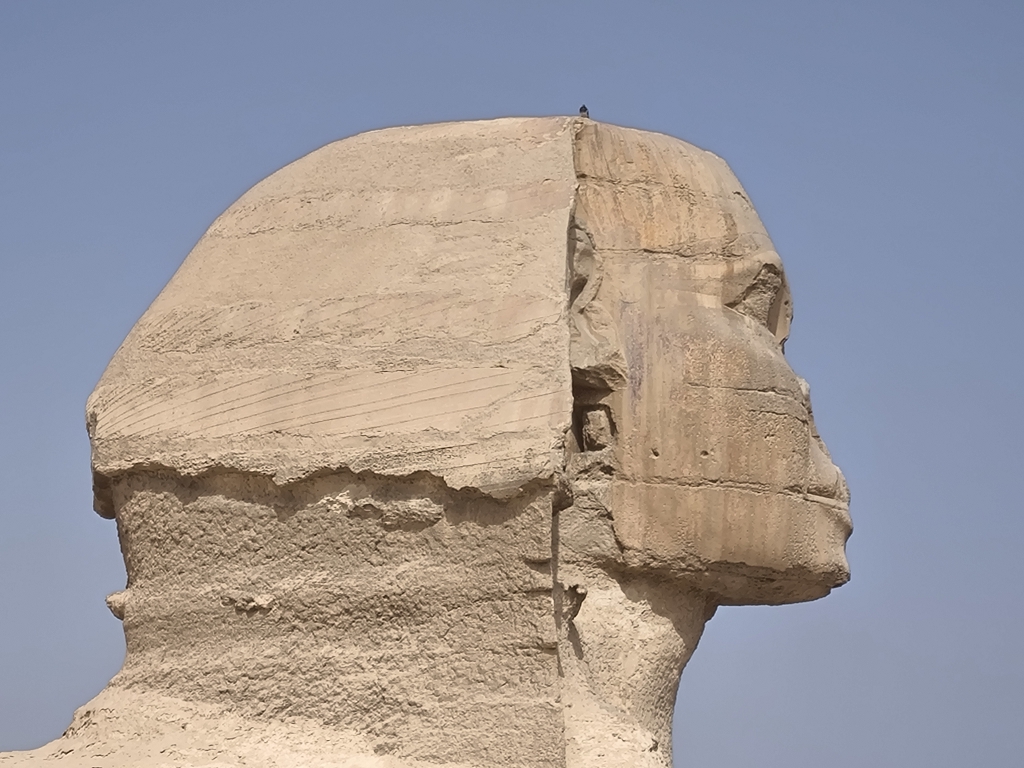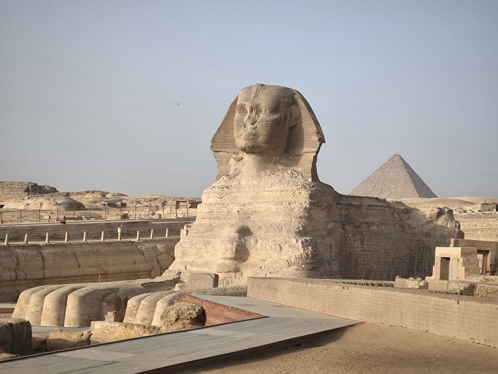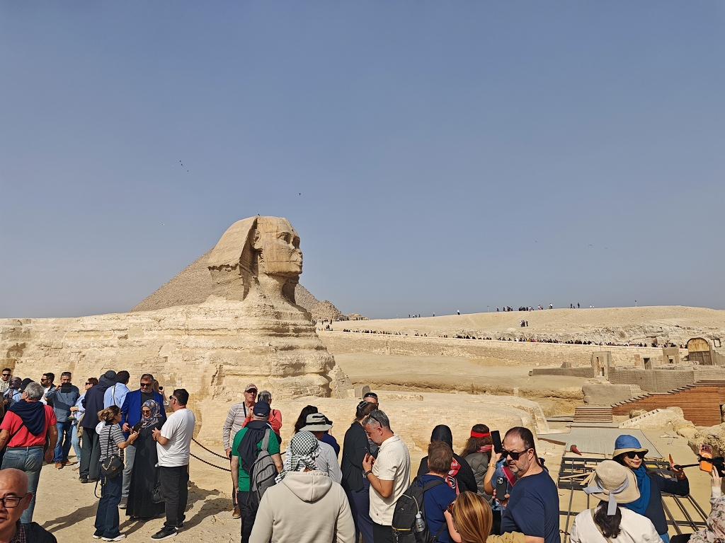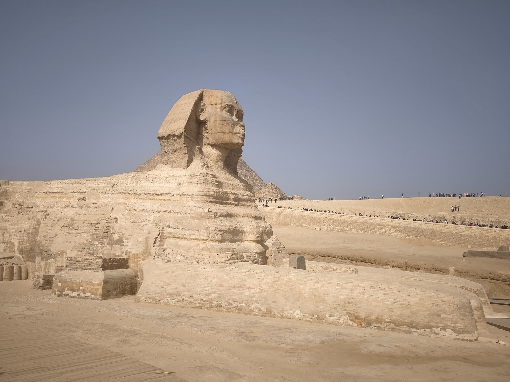 Bevor wir das Gelände nach 4h verliessen gehörte natürlich noch ein Abstecher zur Sphinx zum Pflichtprogramm. Leider hatten zu diesem Zeitpunkt auch viele andere Tourgruppen dieselbe Idee und so ging es rund um die Sphinx zu wie im Karneval. Trotz des beeindruckenden Abbilds wollte nicht dieselbe Begeisterung aufkommen, wie bei den Pyramiden. Aber trotzdem hinterließ auch diese letzte große Sehenswürdigkeit auf dem Plateau noch einmal einen nachhaltigen Eindruck.