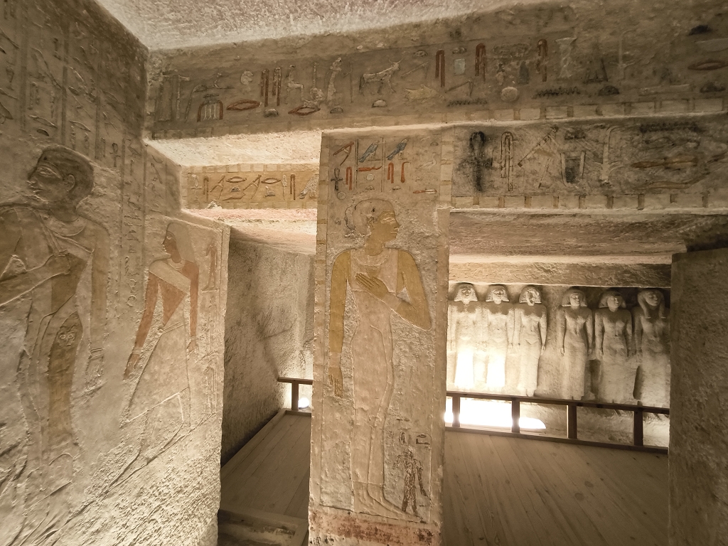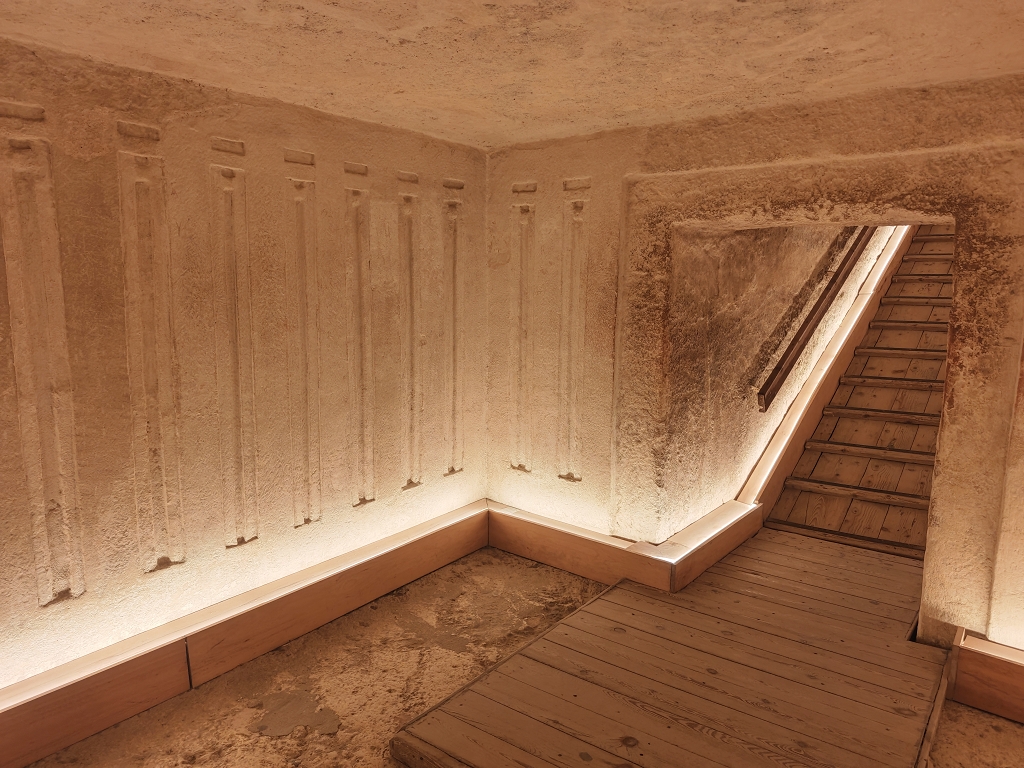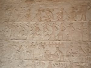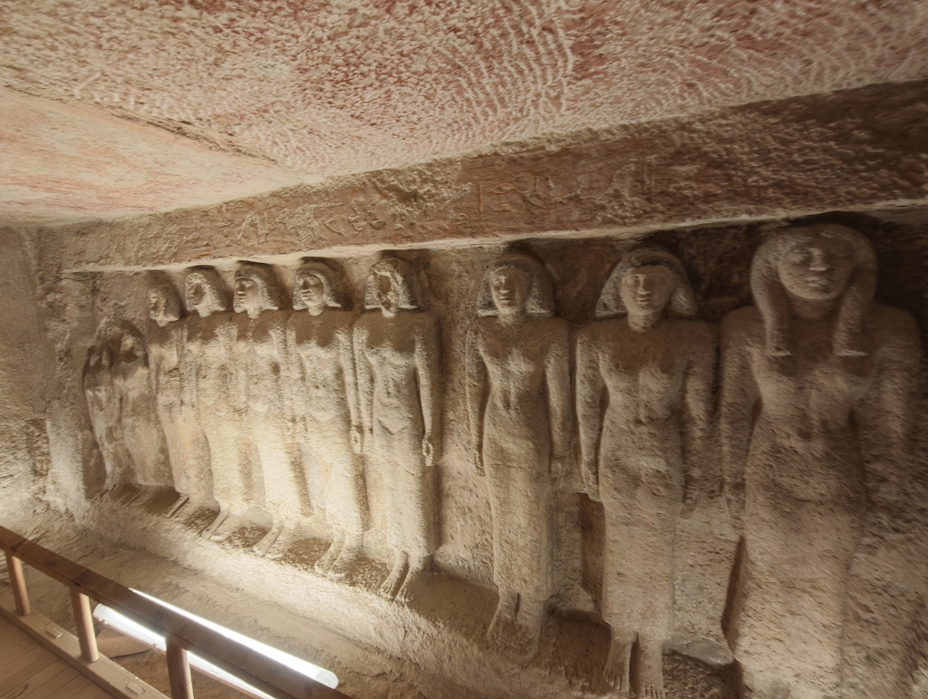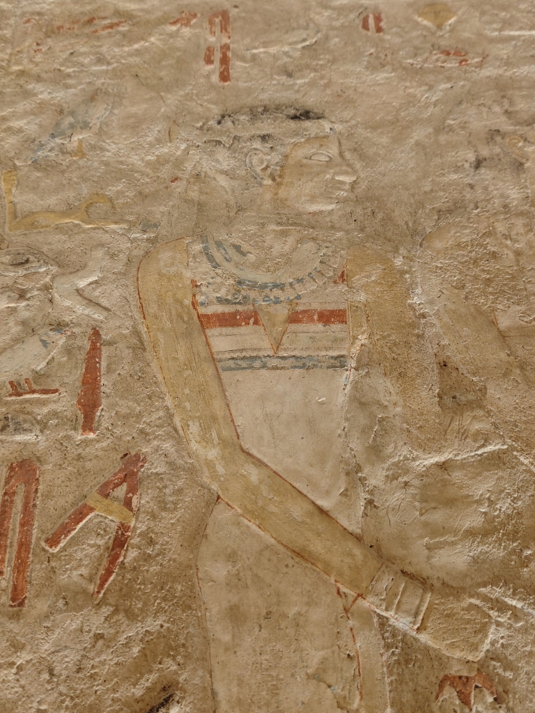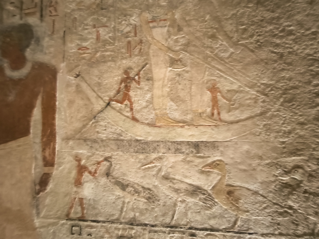 Zusätzlich zu den Pyramiden hatten wir auch noch ein Ticket für das Grab von Meresankh III gelöst. Dieses Grab beinhaltet mit die besten und schönsten Reliefs in der Nekropole von Gizeh. Hier kann man viele interessante Arbeiten aus dem Alltagsleben entdecken, und auch die anderen Wandreliefs sind sehr einzigartig, weil sie auch Halbstatuen beinhalten, die frontal ausgerichtet sind.