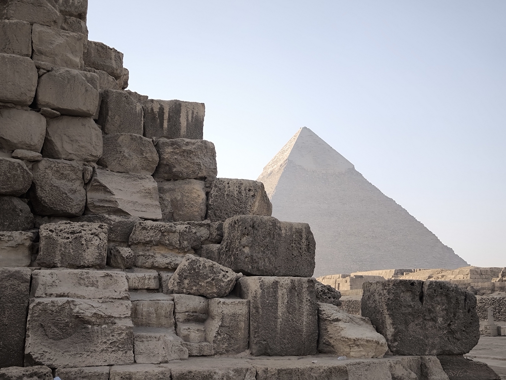 Stellt euch vor, wir müssten heute 2,3 Millionen Steinblöcke mit einem durchschnittlichen Gewicht von 2,5 Tonnen ohne moderne Maschinen nicht nur aufschichten, sondern auch exakt ausrichten. Ich glaube, dass würde nicht besonders gut funktionieren ;-). Auf jeden Fall ist es ein faszinierendes Erlebnis, im Schatten dieser großen Pyramide zu stehen.