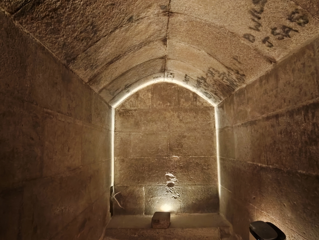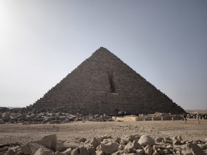 Ein weiteres Eintrittsticket verschaffte uns Zutritt zu der kleinsten der 3 Pyramiden. Die Pyramide von Menkaure ist zwar die kleinste, aber war ursprünglich mit Granit aus Assuan verkleidet. Also mussten die Steinblöcke nur mehrere hundert Kilometer den Nil entlang geschippert werden, bevor sie hier zum Einsatz kamen – ein wahnsinniger Aufwand!