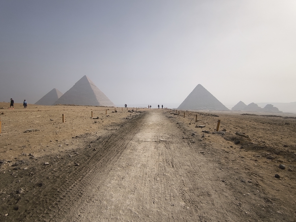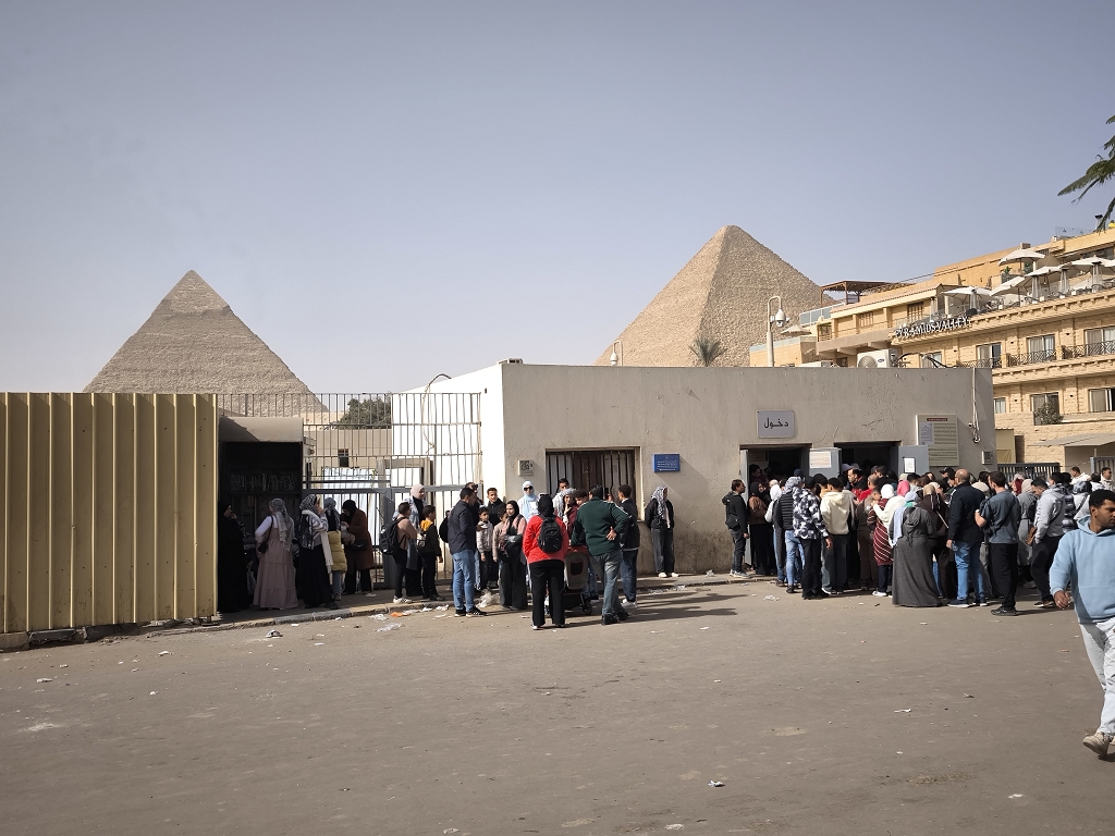 Im letzten Jahr haben sie angefangen, den Zugang zum Plateau von Gizeh besser zu regulieren und ein neues Ticket Office gebaut. Leider ist die Sicherheitsschleuse immer noch aus den 60ern. Durch ein winziges Loch werden unzählige Menschen gepresst, die unter der Tür auf die unfreundlichsten Sicherheitsangestellten treffen, die wir bisher in Ägypten getroffen haben. Da werden Leute angeschrien, wenn sie nicht die richtigen Papiere haben und alles funktioniert völlig schroff. Fast schon, als ob sie die Leute abschrecken wollen, überhaupt hierher zu kommen.