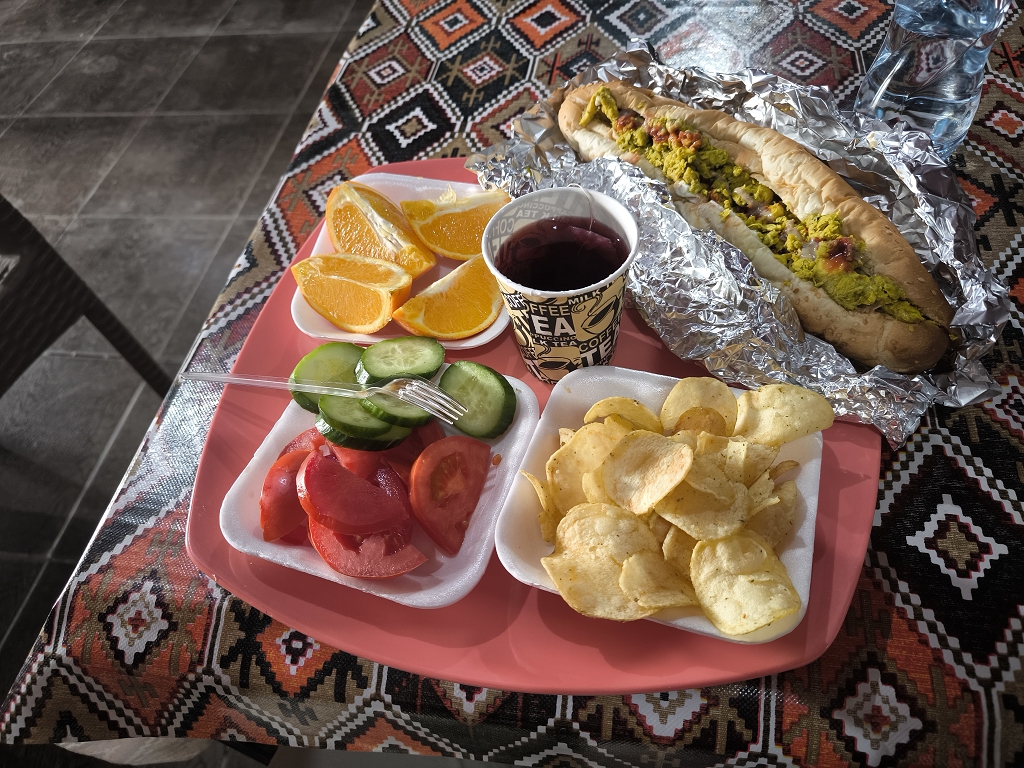 Nach so vielen tollen Erlebnissen und den ganzen Kilometer brauchten wir dringend eine Stärkung. Dank Google hatten wir schon einen Platz gefunden: Ninos Sandwich Laden, der nur wenige Meter von unserem Hotel entfernt auf uns wartete. Und ich kann diesen Platz nur jedem ans Her legen. Nino ist der perfekte Gastgeber in seinem Imbiss und verkaufte einem das beste Chicken Shawarma Sandwich in der Kombi mit Salat, Chips, Tee und Wasser für unschlagbare 4,50 Euro – und das in Sichweite der Pyramiden. Wirklich eine Empfehlung!