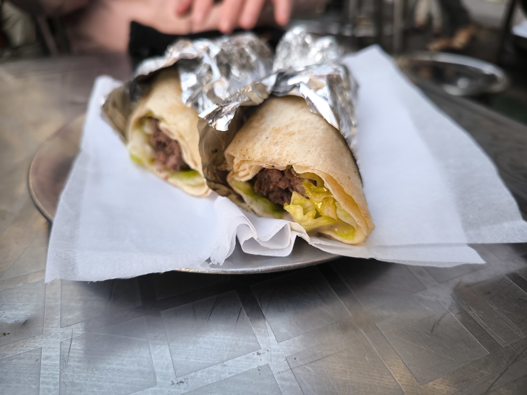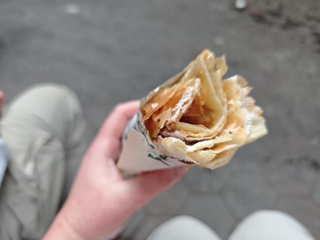 Ein paar Highlights möchte ich doch hervorheben. Die Falafel waren wirklich mit die besten, die ich bisher gegessen habe. Wirklich fluffig und überhaupt nicht trocken. Der Lammkebab war sehr fein gewürzt und hatte den perfekten Röstgrad. Und natürlich die süße Pizza eher eine Art Blätterteiggebäck 😉
