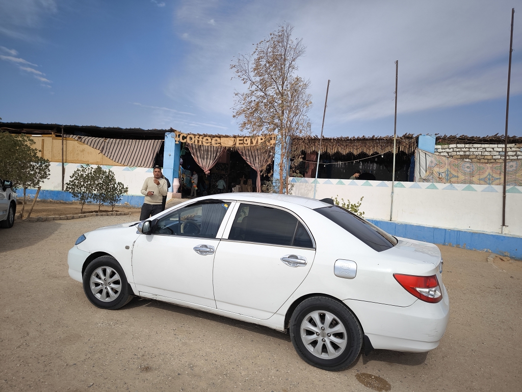 So schaukelten wir mit einer Toilettenpause recht entspannt nach Abu Simbel. An der Raststation trafen wir noch einen Souvenirhändler, der mal wieder perfekt deutsch sprach und sich als Wolfgang vorstellte. Sachen gibt es da draußen! Die anderen nennen sich Tom Cruise oder Rambo und er Wolfgang – lustig. Außerdem stellten wir fest, dass unser Fahrer ein ausgeprägtes Helfersyndrom hat, was auf der Rückfahrt noch zu interessanten Situation führte.