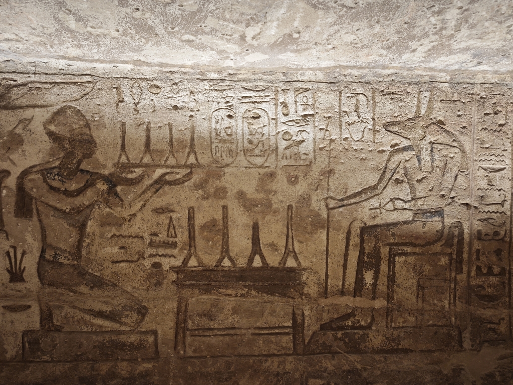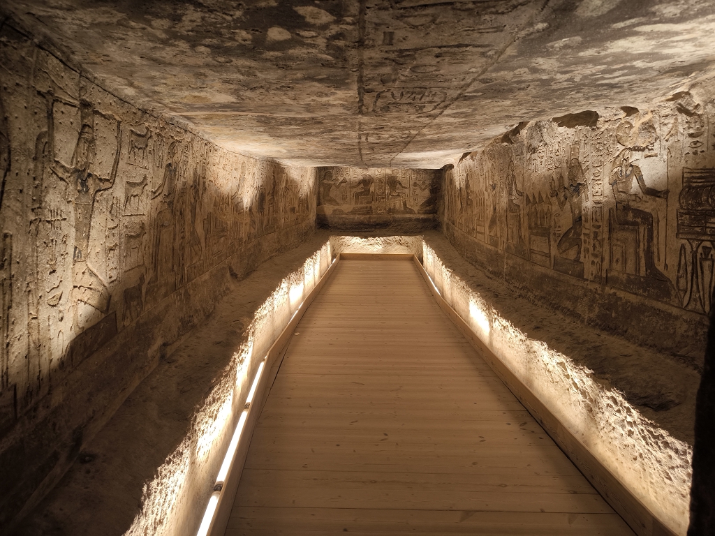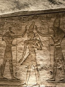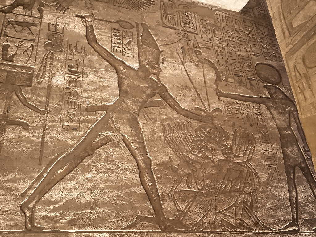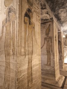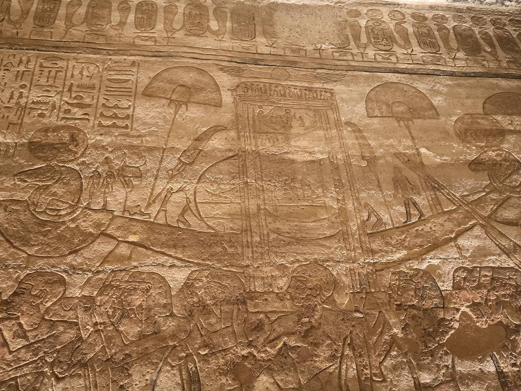 Wenn wir von den Tempeln in Abu Simbel sprechen, fallen einem immer die 4 riesigen Statuen von Ramses II. am Eingang ein und natürlich die Verlegung der Tempel in den 60er Jahren, um sie vor den Fluten des Stausees zu schützen. Beides ist wirklich faszinierend, aber der Tempel hat auch im Innern sehr viele tolle Statuen und Reliefs zu bieten. Besonders interessant ist, wie kriegerisch die Szenen in diesem Tempel sind. Jede Wand zeigt Bilder, wie Ramses II. seine Feinde in den Staub zwingt und er mit seinem großen Streitwagen alle Gegner besiegt – sehr martialisch. Auch die Mengen an Statuen von ihm lassen doch einen gewissen Komplex erkennen.