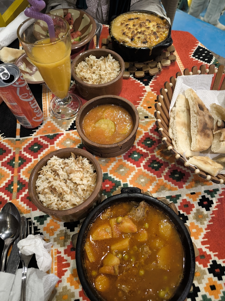 Nach dem langen Tag gingen wir direkt von der Fähre zu King Jamaica zum Abendessen. Heute freuten wir uns darauf, wieder Tagine zu Essen. Tagine sind verschiedene Variationen von Eintöpfen im Tongefäß geschmort. Meist gibt es sie zusammen mit Reis, Salat, Suppe, Tahin. Und heute war es definitiv besonders gut – das Restaurant ist echt zu empfehlen!