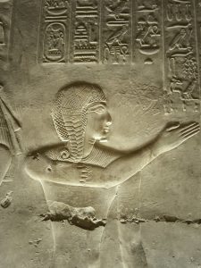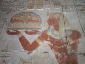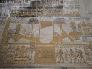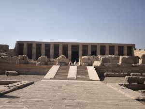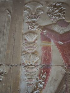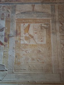 Zurück zum Tempel. Es war richtig angenehm, in Ruhe durch die Säulenhallen zu wandeln und viele neue unbekannte Szenen zu entdecken. Da der Tempel komplett mit Dach kommt und deshalb auch weniger beleuchtet ist, hinterlässt er einen viel mystischeren Eindruck und man fühlt sich in wie damals gewünscht am Eingang ins Totenreich. Uns haben vor allem die feinen Reliefs begeistert , die auch an vielen Stellen noch komplett farbig waren. Außerdem ist Abydos auch berühmt für die Königsliste. Für Ägyptologen ein Glücksfall – so wussten sie endlich ganz genau welche Pharaonen es in welcher Reihenfolge bisher gegeben hatte 😉