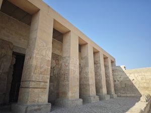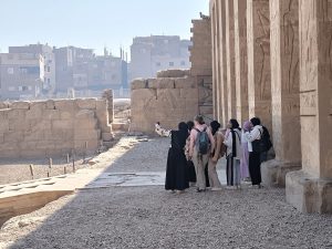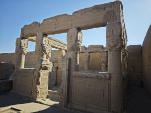 Hathor ist die Göttin der Fruchtbarkeit und vor dem Tempel gab es deshalb auch zwei Geburtshäuser, die speziell der Fruchtbarkeit geweiht waren – warum hier eine kleine Gruppe westlicher Frauen exzessiv gebetet haben – überlass ich jetzt mal eurer Fantasie