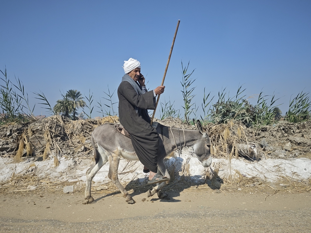 Nach diesem ruhigen Erlebnis stürzten wir uns wieder ins wilde Dorfleben. Dabei lernten wir, dass auch auf dem Esel telefoniert werden muss. Insgesamt kann ich nur sagen – ich habe bisher in keinem Land so viele Esel gesehen wie in Ägypten – die sind hier für jede Art von Transport voll integriert.