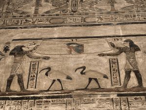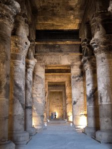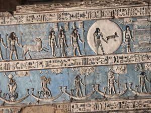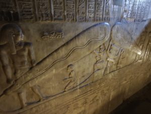 Das spannende bei diesem Tempel war auch, dass man hier auf verschiedenen Ebenen, den Tempel entdecken konnte. So gab es einen Prozessionsweg aufs Dach auf dem Würdenträger einen links und rechts nach oben begleiteten. Dort fand man dann einzigartige Darstellungen von Einbalsamierungen und Totenritualen. Aber nicht nur hoch hinaus, sondern auch in die Krypta durfte man hinabsteigen – durch ein winziges Loch erreichte man einen Gang mit vielen sehr beeindruckenden Reliefs