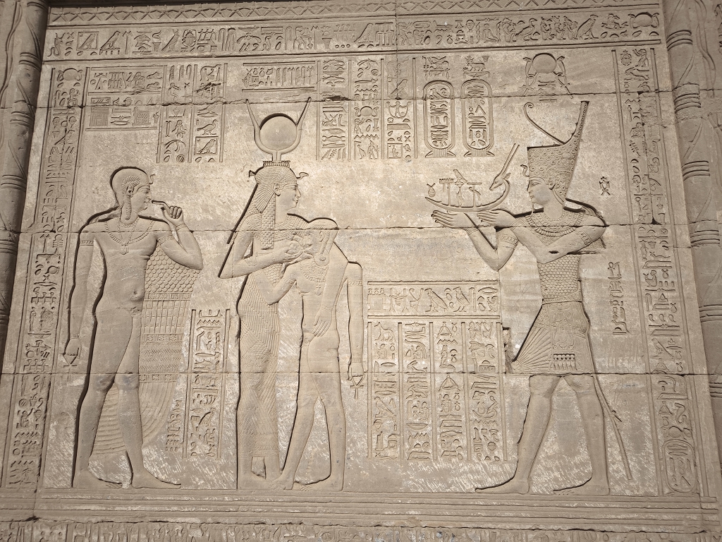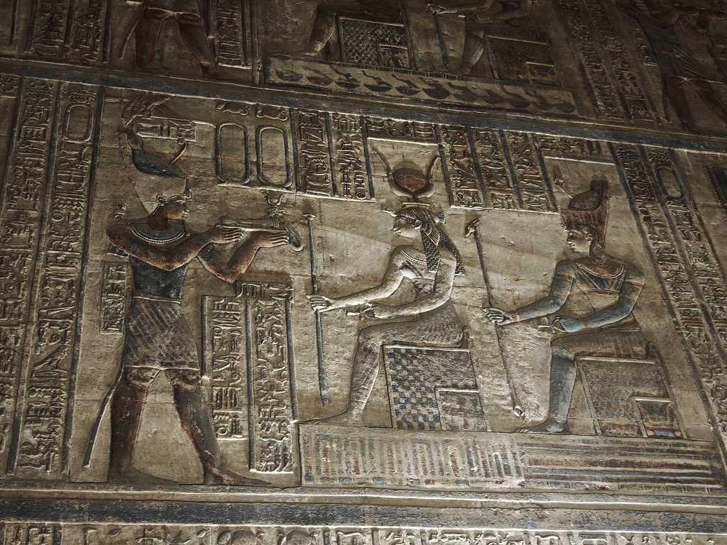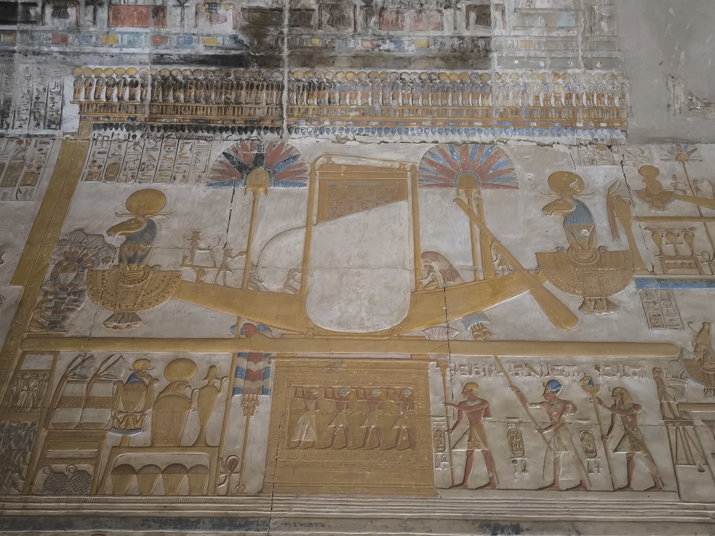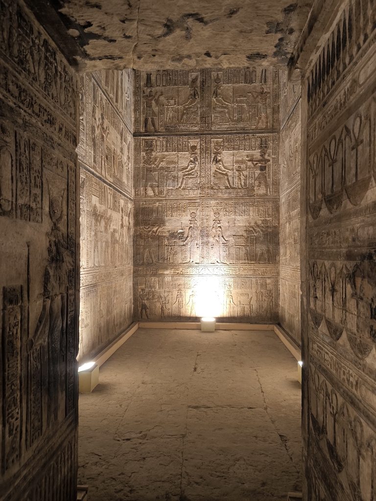 Das spannende bei diesem Tempel war auch, dass man hier auf verschiedenen Ebenen, den Tempel entdecken konnte. So gab es einen Prozessionsweg aufs Dach auf dem Würdenträger einen links und rechts nach oben begleiteten. Dort fand man dann einzigartige Darstellungen von Einbalsamierungen und Totenritualen. Aber nicht nur hoch hinaus, sondern auch in die Krypta durfte man hinabsteigen – durch ein winziges Loch erreichte man einen Gang mit vielen sehr beeindruckenden Reliefs