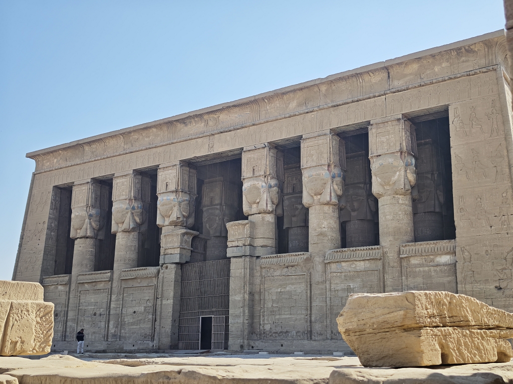 Hathor ist die Göttin der Fruchtbarkeit und vor dem Tempel gab es deshalb auch zwei Geburtshäuser, die speziell der Fruchtbarkeit geweiht waren – warum hier eine kleine Gruppe westlicher Frauen exzessiv gebetet haben – überlass ich jetzt mal eurer Fantasie