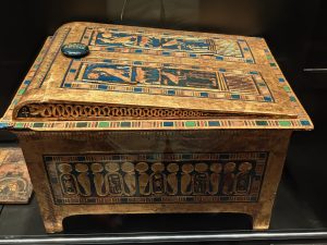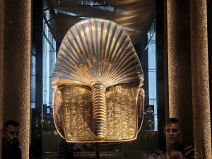 Da werden die über 60 Statuen auf der großen Treppe links liegen gelassen und der Ramses II in der Eingangshalle nur mit einem Augenaufschlag bedacht. Alles drängt und stürmt zu der Maske ;-). Und ja, die Maske ist wirklich einzigartig, aber die ganze Pracht der Grabbeigaben übersteigt jede Vorstellung. Besonders beindruckend ist, wie die Mumie an sich geschützt war. Klassisch war die Mumie in 3 ineinander gelegten Sarkophage eingepackt. Darum wurden 4 vergoldete Schreine auch wieder ineinander geschachtelt, wie bei einer russischen Matroschka. Jeder Schrein war natürlich noch einer anderen Schutzgöttin geweiht, und so geschützt wartete der Pharao auf das Leben nach dem Tod.