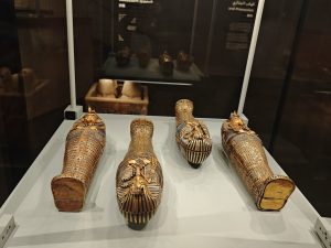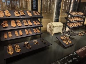 Es ist faszinierend, diesen Wechsel zwischen Prunk, Alltag und Essen an jeder Ecke auf seine eigene Weise zu entdecken. Da findet sich eine riesige Sandalenkollektion, die nicht unähnlich heutigem Schuhwerk ist, neben Tongefäßen für Geflügel und natürlich noch unheimlich schön gefertigter Schmuck.