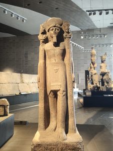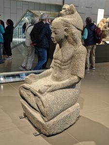 Die restlichen Räume sind in 4 Epochen von der Prähistorie bis zur römischen Zeit unterteilt. In den jeweiligen Epochen wird dann immer zwischen Gesellschaft, Königtum und Glauben unterschieden. Ich möchte hier nicht allzu sehr ins Detail gehen, aber man kann hier stundenlang durch die Hallen wandeln und immer wieder Neues entdecken. Von riesigen Statuen bis hin zu winzigen Objekten hat hier alles einen unheimlichen Charme und jeder findet hier etwas für sich, das ihn nachhaltig beeindruckt. Noch kurz zu den Bildern – nicht wundern, wenn manche von unseren Bildern etwas schräg wirken – das gehört so – musste man doch versuchen, die Spiegelungen und Menschenmassen durch geschickte Kameratechnik auszutricksen.