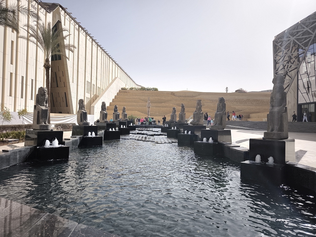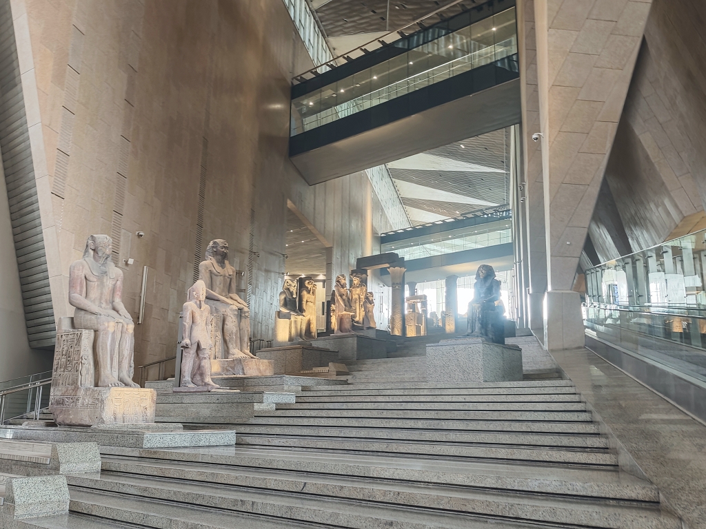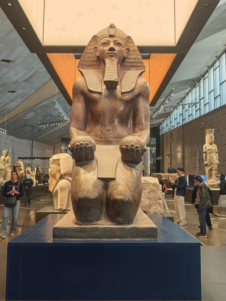 Wie gestern angekündigt stand heute das letzte große Highlight auf dem Programm – das Grand Egyptian Museum. 10 Jahre haben wir darauf gewartet, dass dieses neue Museum endlich seine Pforten öffnet. Die Planung und Umsetzung des Museums war ähnlich komplex wie mancher deutsche Bahnhof, oder Flughafen. Die Grundsteinlegung war vor über 20 Jahren und seitdem wurstelt sich das Museum seiner Eröffnung entgegnen. Theoretisch ist der Bau und die Inneneinrichtung seit fast 10 Jahren fertig und seitdem wurde die Eröffnung für jedes Jahr zumindest in Aussicht gestellt. Im Herbst 2025 war es dann wirklich soweit und mit viel Tam Tam wurde das Museum der Öffentlichkeit übergeben.