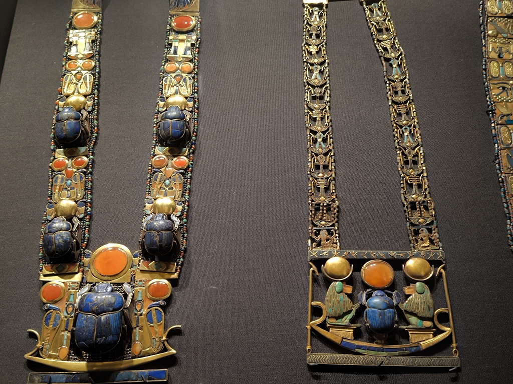 Es ist faszinierend, diesen Wechsel zwischen Prunk, Alltag und Essen an jeder Ecke auf seine eigene Weise zu entdecken. Da findet sich eine riesige Sandalenkollektion, die nicht unähnlich heutigem Schuhwerk ist, neben Tongefäßen für Geflügel und natürlich noch unheimlich schön gefertigter Schmuck.