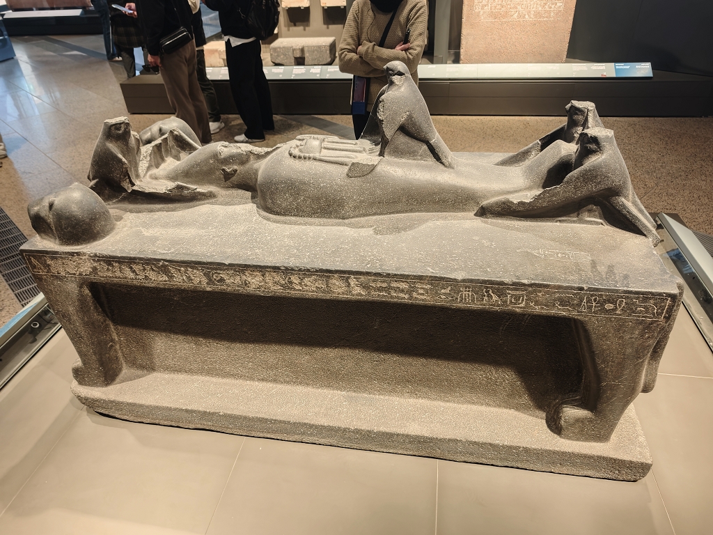 Die restlichen Räume sind in 4 Epochen von der Prähistorie bis zur römischen Zeit unterteilt. In den jeweiligen Epochen wird dann immer zwischen Gesellschaft, Königtum und Glauben unterschieden. Ich möchte hier nicht allzu sehr ins Detail gehen, aber man kann hier stundenlang durch die Hallen wandeln und immer wieder Neues entdecken. Von riesigen Statuen bis hin zu winzigen Objekten hat hier alles einen unheimlichen Charme und jeder findet hier etwas für sich, das ihn nachhaltig beeindruckt. Noch kurz zu den Bildern – nicht wundern, wenn manche von unseren Bildern etwas schräg wirken – das gehört so – musste man doch versuchen, die Spiegelungen und Menschenmassen durch geschickte Kameratechnik auszutricksen.