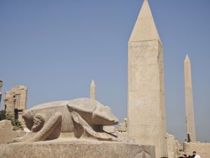 Auch sonst ist der Tempel unheimlich beeindruckend. Riesige Eingangstore – Pylonen genannt, der mit 30m Höhe höchste Obelisk Ägyptens, ein heiliger See, ein glücklicher Skarabäus und und und! Also für Unterhaltung war auf jeden Fall gesorgt.