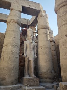 Nach diesem ersten Highlight ging es erst einmal zurück ins Hotel – Frühstücken! Aber wir hatten ja auch noch andere wichtige Sachen zu besichtigen. Die Tempel auf der Ostseite des Nils und hier natürlich allen voran Karnak. Karnak ist die größte Tempelanlage Ägyptens. Über 1500 Jahre hat hier ein Pharao nach dem anderen den Bau erweitert und nach seinem Vorlieben gestaltet – so entstand ein 30 Hektar großes Areal, in dem es viele Highlights zu entdecken gibt.