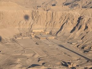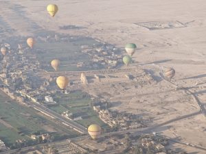 Wir waren in Runde 2 dabei – deutlich nach Sonnenaufgang, aber nur 2 Stunden nach unserer Abholzeit. Mit einer bunten Mischung aus Asien und Europa ging es mit unserem Piloten in die Höhe. Und jetzt wurde es ein wirklich einmaliges Erlebnis – fast eine Stunde schwebten wir über den Tälern und Tempeln westlich des Nils. Unser Pilot machte einen sehr routinierten Eindruck und wir konnten das Erlebnis in vollen Zügen genießen. Aus der Vogelperspektive konnte man die ganzen Tempel noch besser erkennen und die Größe dieser bedeutenden Anlagen noch besser erfassen. Auch der Blick über die Zuckerrohrfelder war beeindruckend. Einen geeigneten Landeplatz zwischen den Stromleitungen zu finden dauerte etwas, und so kamen wir noch länger in den Genuss des Fliegens. Insgesamt ein wirklich eindrückliches Erlebnis.