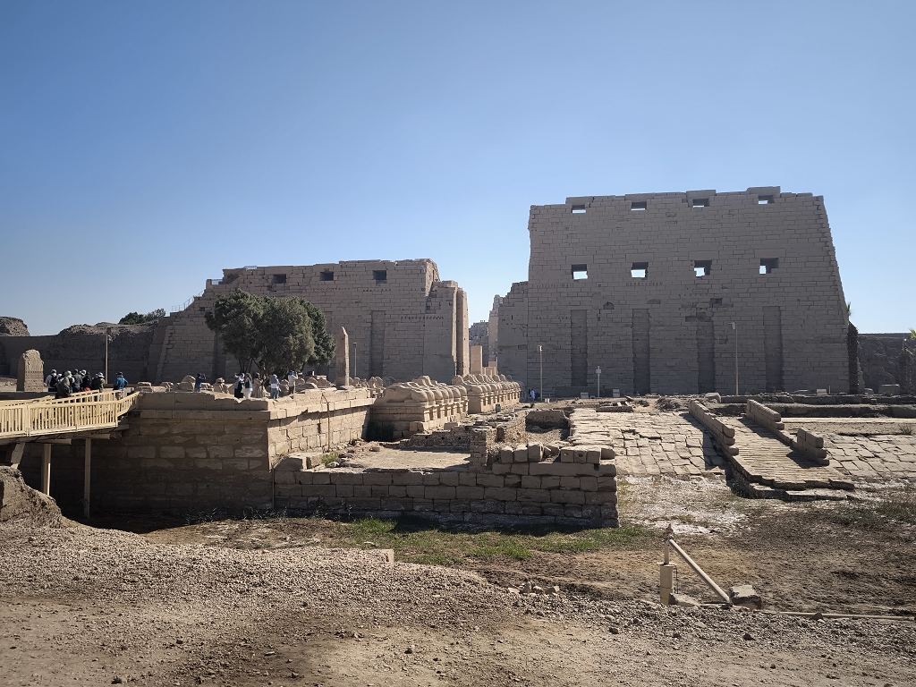 Nach diesem ersten Highlight ging es erst einmal zurück ins Hotel – Frühstücken! Aber wir hatten ja auch noch andere wichtige Sachen zu besichtigen. Die Tempel auf der Ostseite des Nils und hier natürlich allen voran Karnak. Karnak ist die größte Tempelanlage Ägyptens. Über 1500 Jahre hat hier ein Pharao nach dem anderen den Bau erweitert und nach seinem Vorlieben gestaltet – so entstand ein 30 Hektar großes Areal, in dem es viele Highlights zu entdecken gibt.